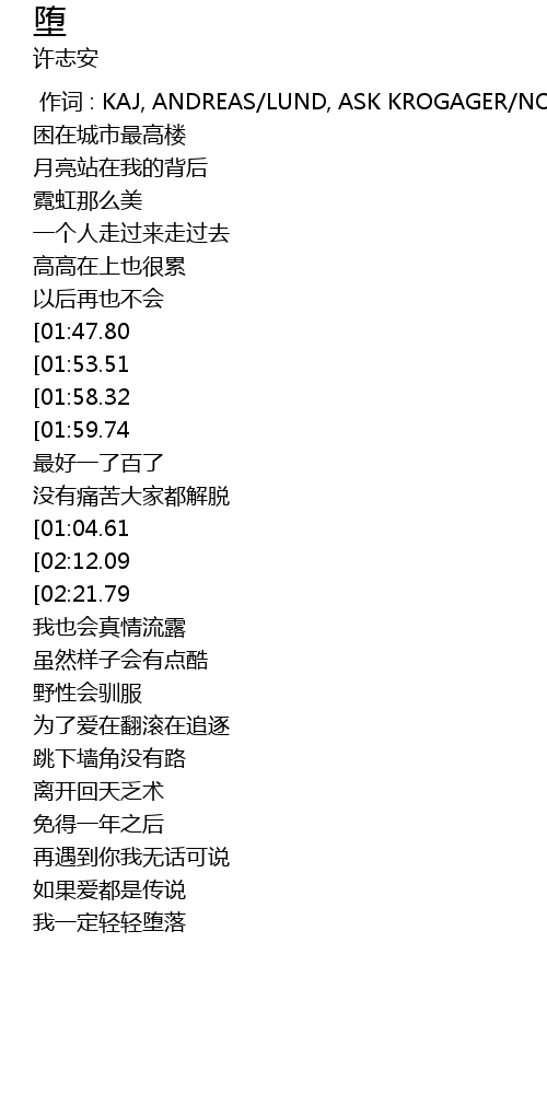 | [01:08.68][02:21.79][03:00.81] | 不要阻止我堕落 |