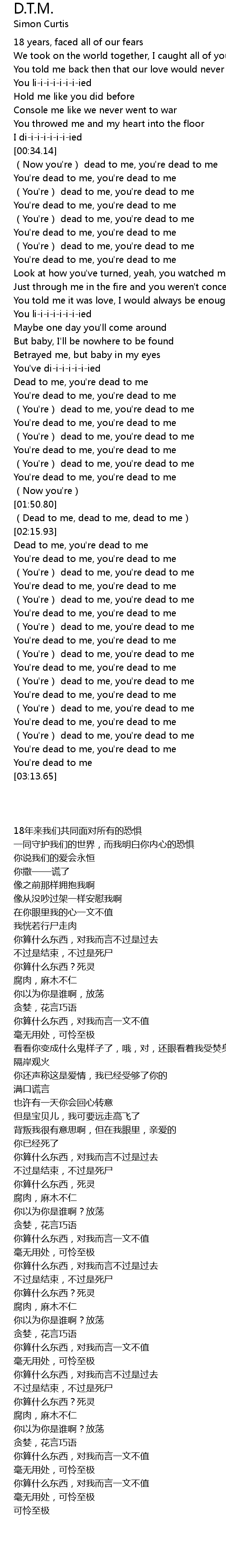| [00:37.77] | (Now you're) dead to me, you're dead to me |