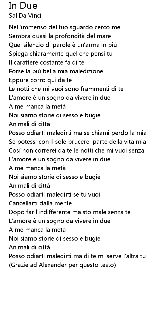 | Posso odiarti maledirti ma di te mi serve l' altra tua meta | |