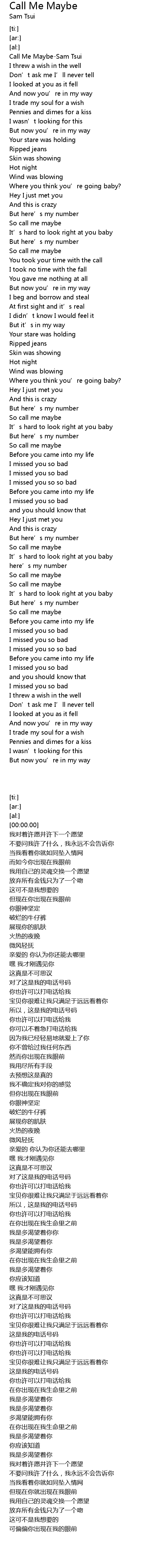 | [00:00.00] | Call Me MaybeSam Tsui |