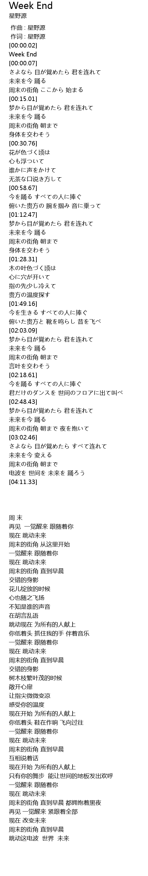 | [00:00.03] | 周 末 |