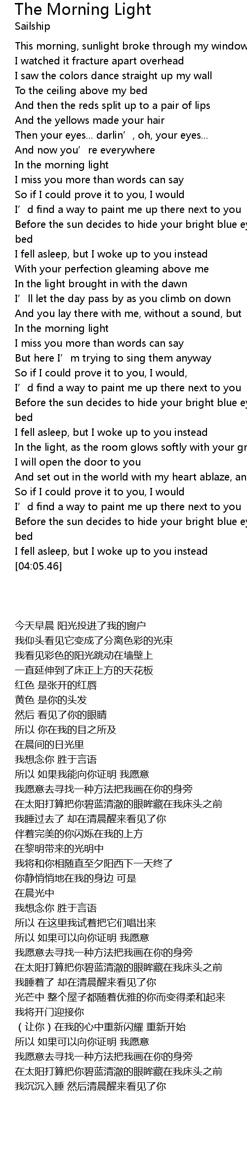 | [03:49.00] | 在太阳打算把你碧蓝清澈的眼眸藏在我床头之前 |