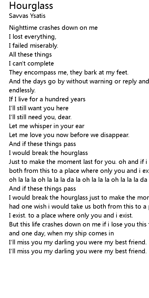I would break the hourglass just to make the moment last for you. oh, and if i had one wish i would take us both from this to a place where only you and |