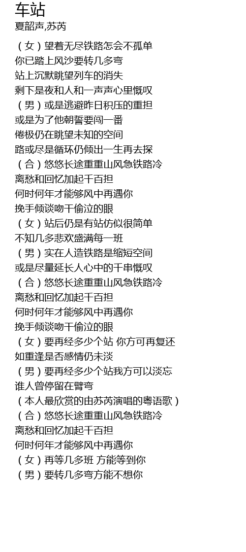 [03:21.94] (本人最欣赏的由苏芮演唱的粤语歌)