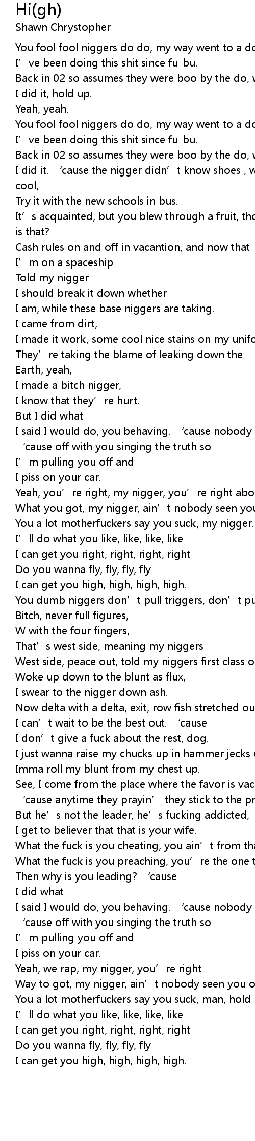 | You fool fool niggers do do, my way went to a do like a loose loose, | |
