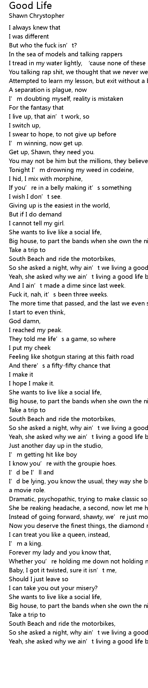 | So she asked a night, why ain’t we living a good life? | |