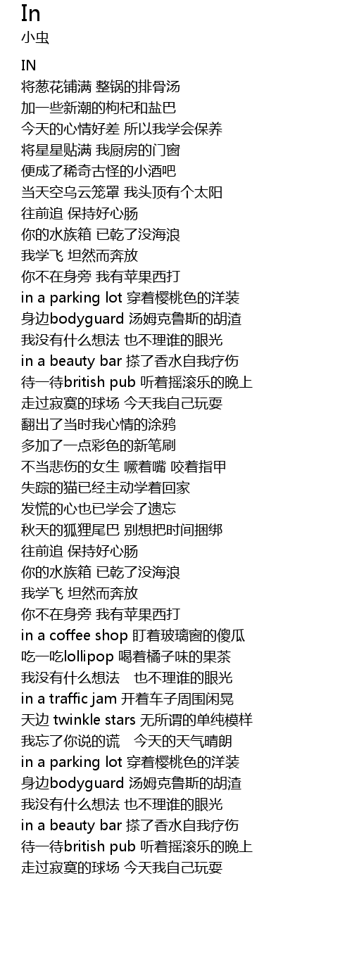 | [01:39.96] | in a beauty bar cha le xiang shui zi wo liao shang |