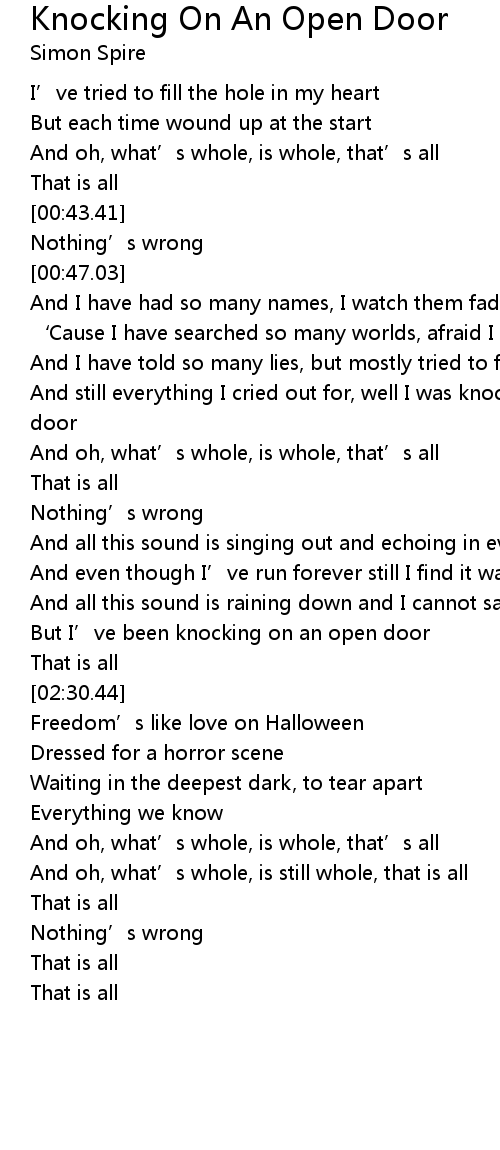 | [02:16.15] | But I' ve been knocking on an open door |