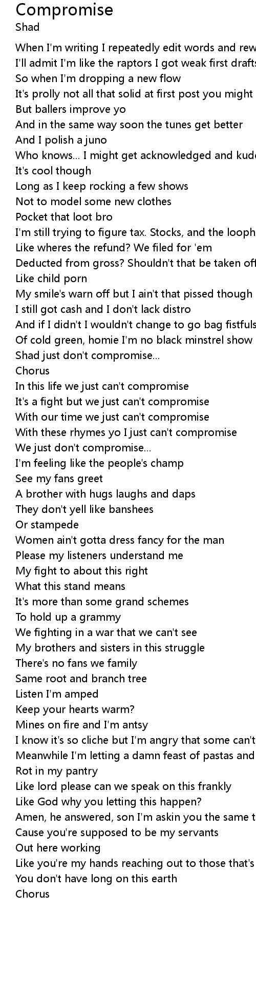 With these rhymes yo I just can't compromise |