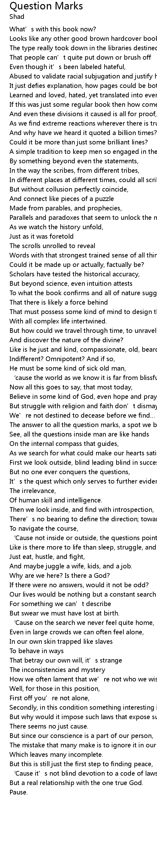 | ‘Cause not inside or outside, the questions point to a source. | |