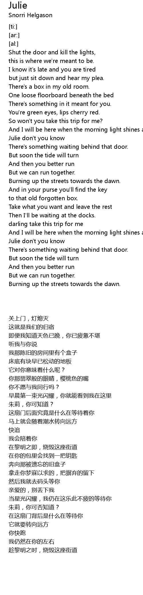 | [02:22.97] | 朱莉,你可否知道? |