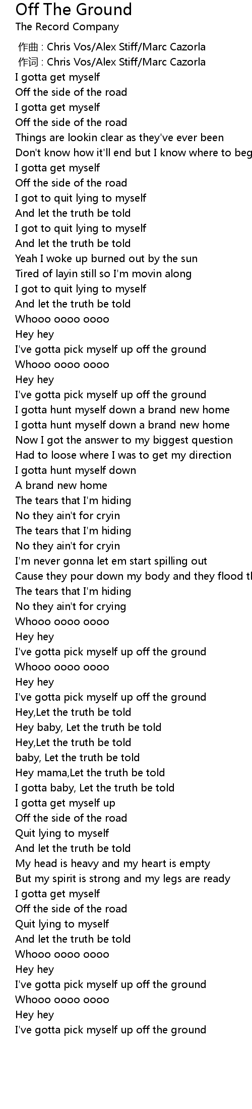 | [03:48.910] | I' ve gotta pick myself up off the ground |