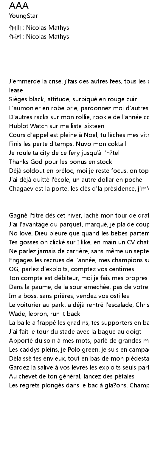 | [01:44.52] | Apporté du soin à mes mots, parlé de grandes marques |