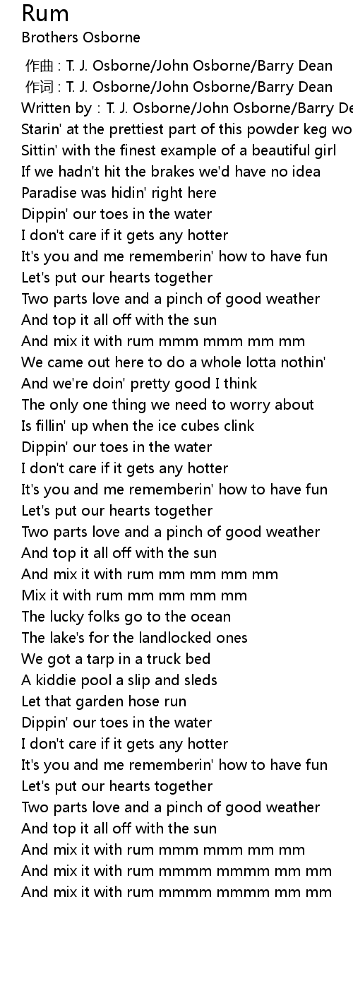 | [03:12.92] | And mix it with rum mmmm mmmm mm mm |