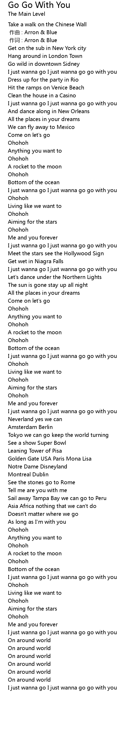 | [00:20.69] | I just wanna go I just wanna go go with you |