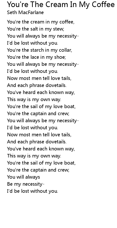 You're the cream in my coffee, |