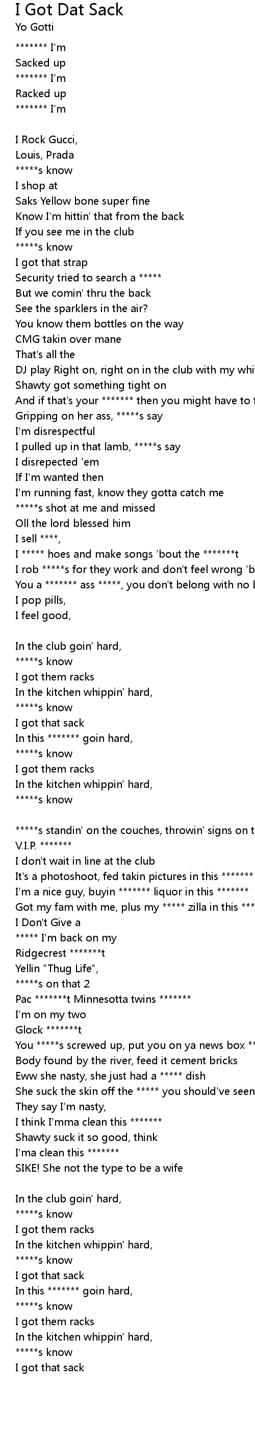 I ***** hoes and make songs 'bout the *******t |