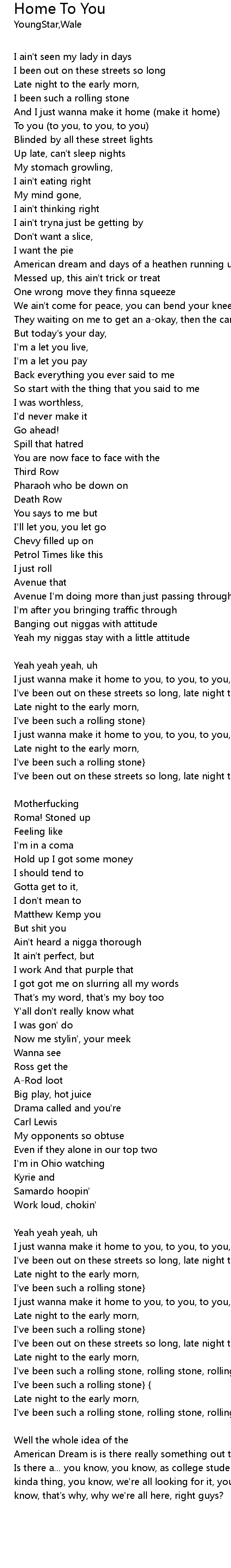 | I've been out on these streets so long, late night to the early morn [Verse 2: Wale] | |