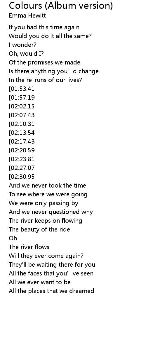 | [01:43.98] | The river keeps on flowing |