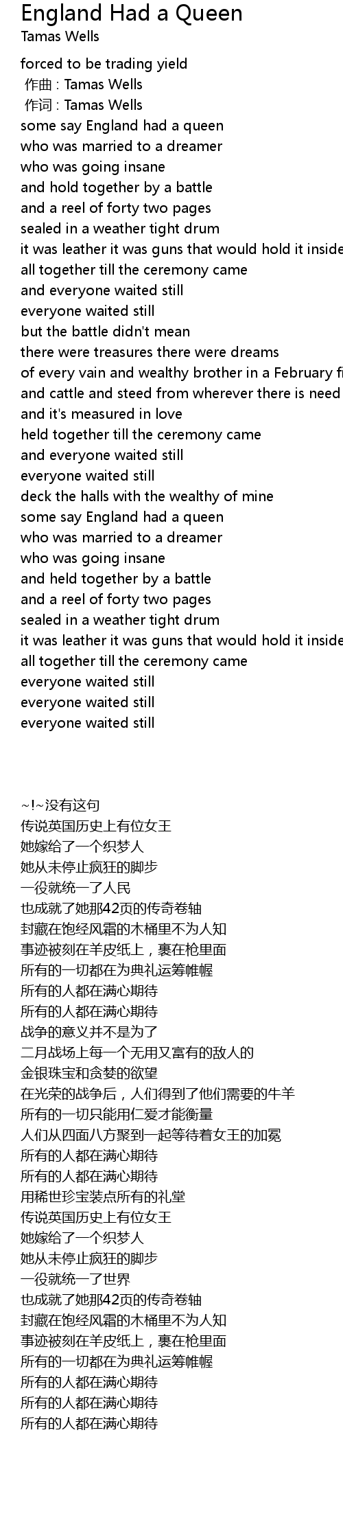| 歌曲 | England Had a Queen |