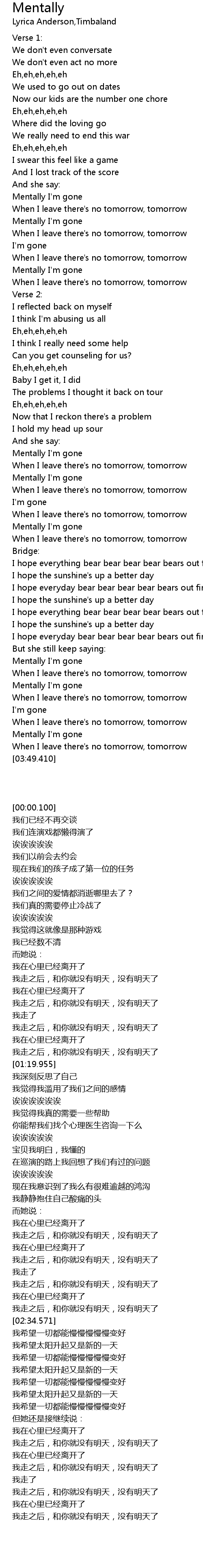 Mentally I'm gone |