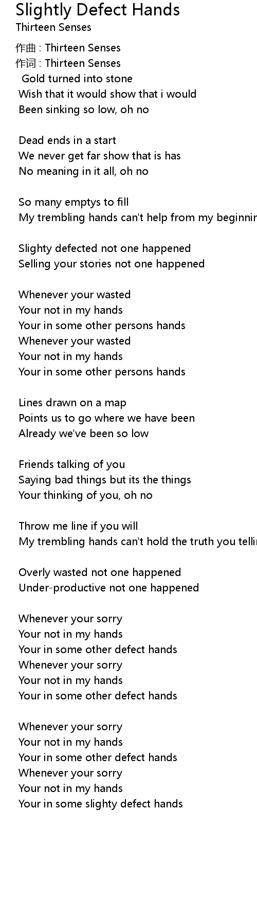 | 歌曲 | Slightly Defect Hands |