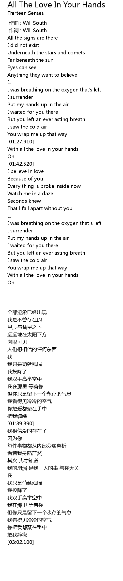 | [01:29.250] | With all the love in your hands |