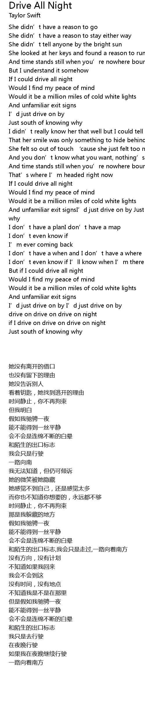 | [01:56.859] | And unfamiliar exit signsI' d just drive on by Just south of knowing why |