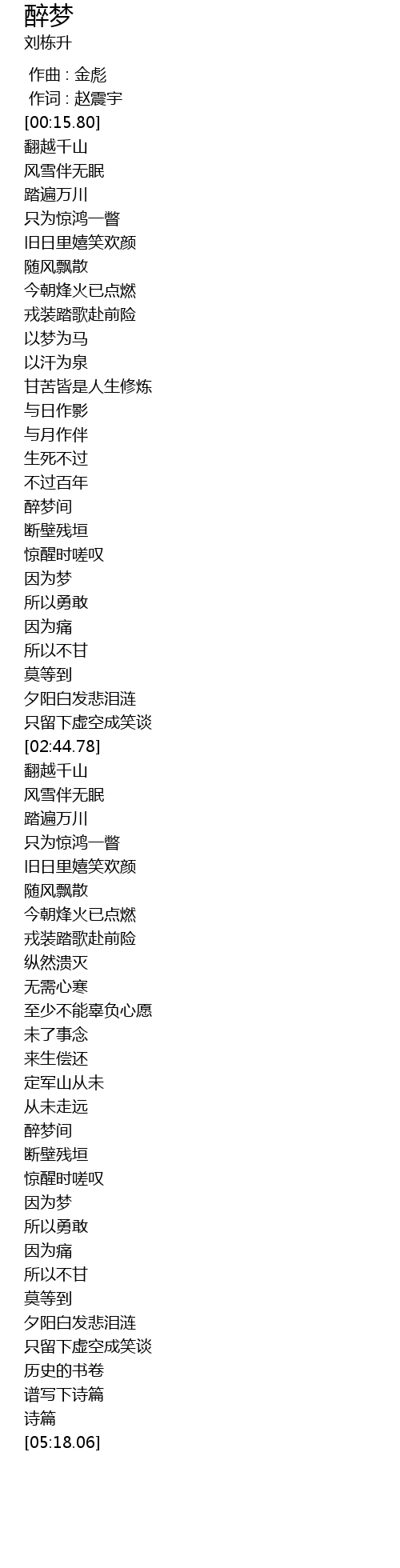 | [01:29.65] | yǐ mèng wèi mǎ |