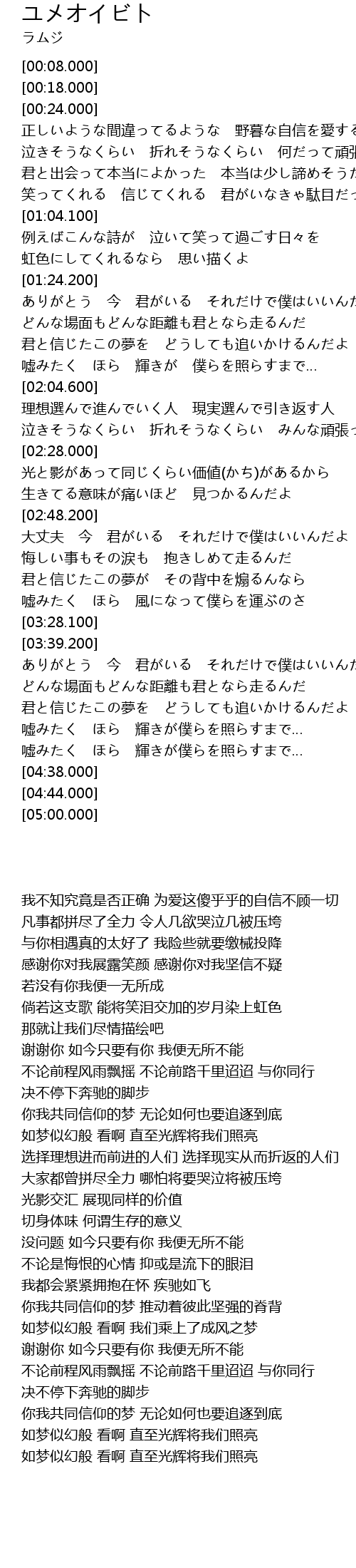| [04:09.300] | 你我共同信仰的梦 无论如何也要追逐到底 |