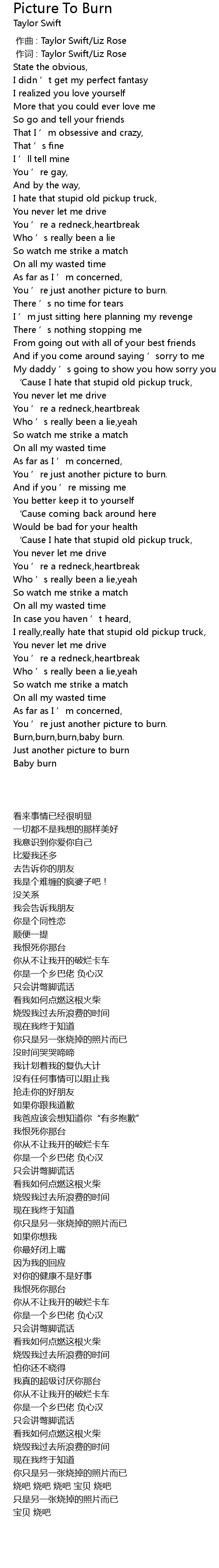 | 歌曲 | Picture To Burn |