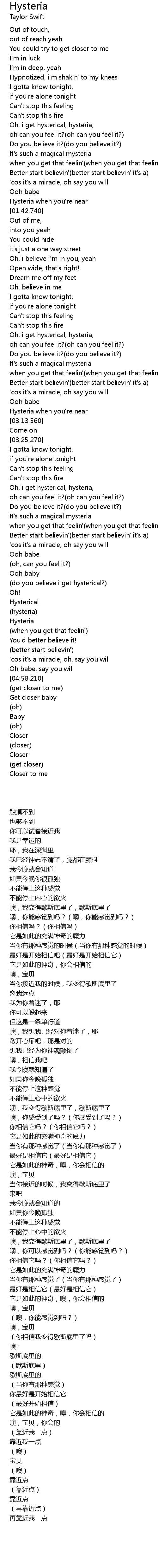 Hysteria 歌词