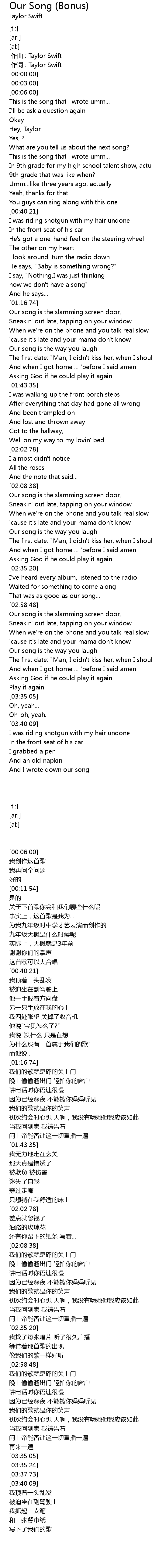 | [00:00.00] | zuò qǔ : Taylor Swift |