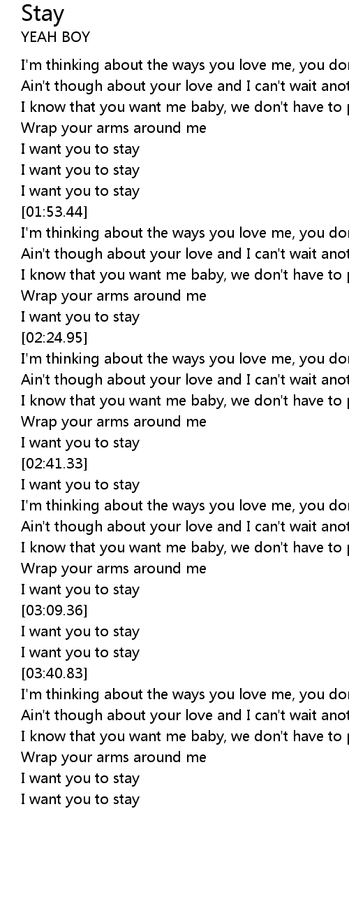 | [02:28.79] | Ain't though about your love and I can't wait another day |
