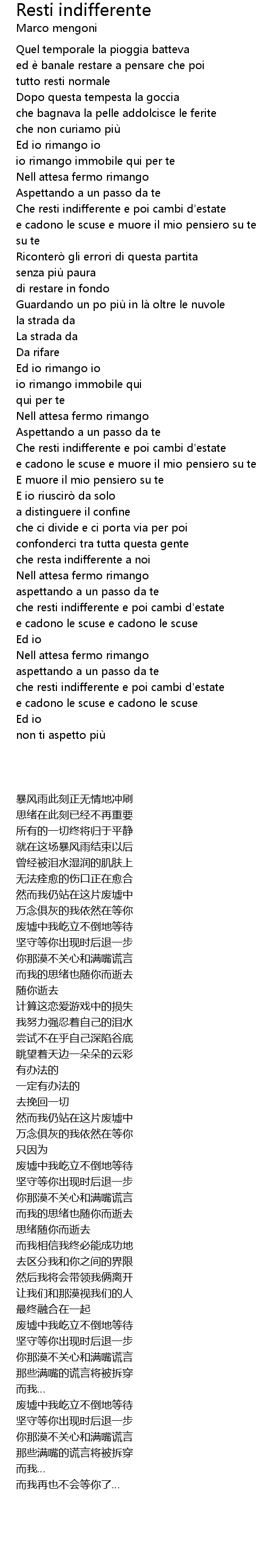 | 歌曲 | Resti indifferente |