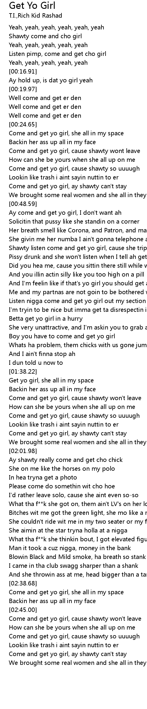 Shawty come and cho girl |