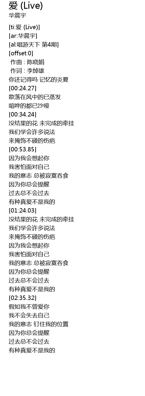 | [00:38.59] | 没结果的花 未完成的牵挂 |