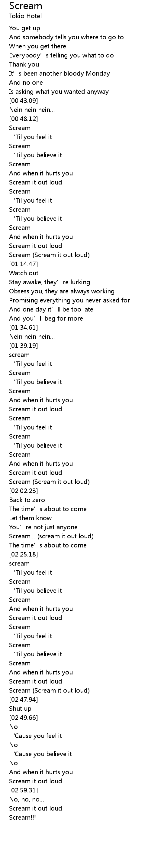 | [02:46.36] | Scream (Scream it out loud) |