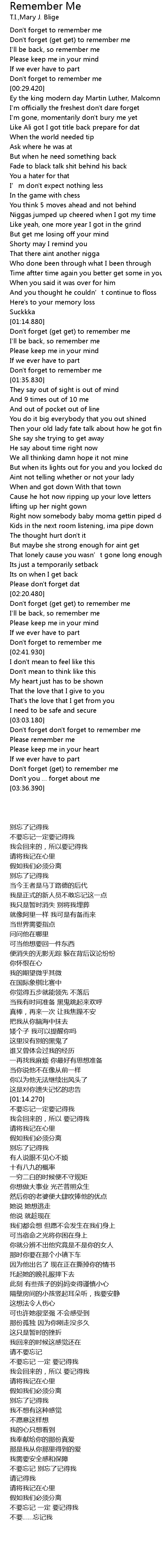 | [01:15.250] | Don' t forget get get to remember me |