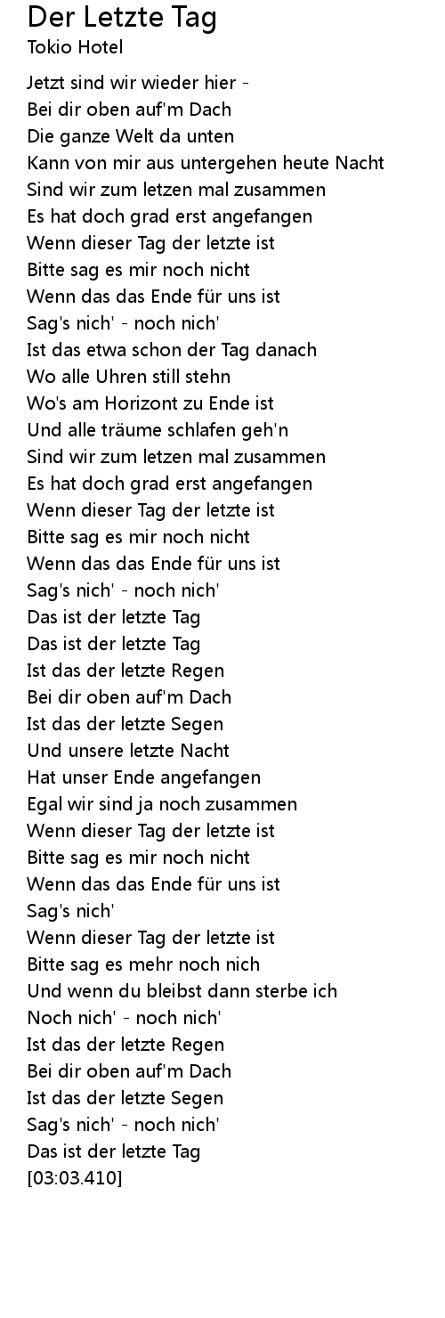 | [00:32.410] | Wenn dieser Tag der letzte ist |