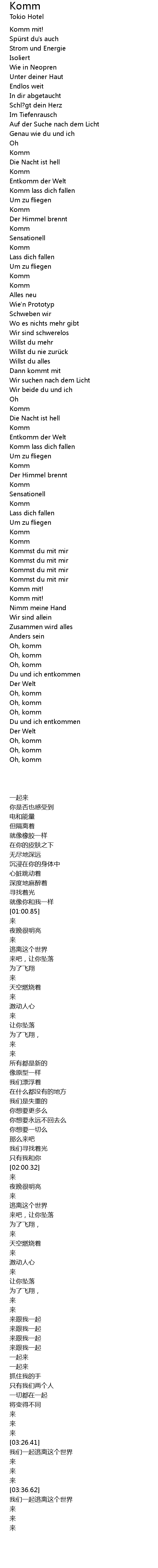 | 歌曲 | Komm |