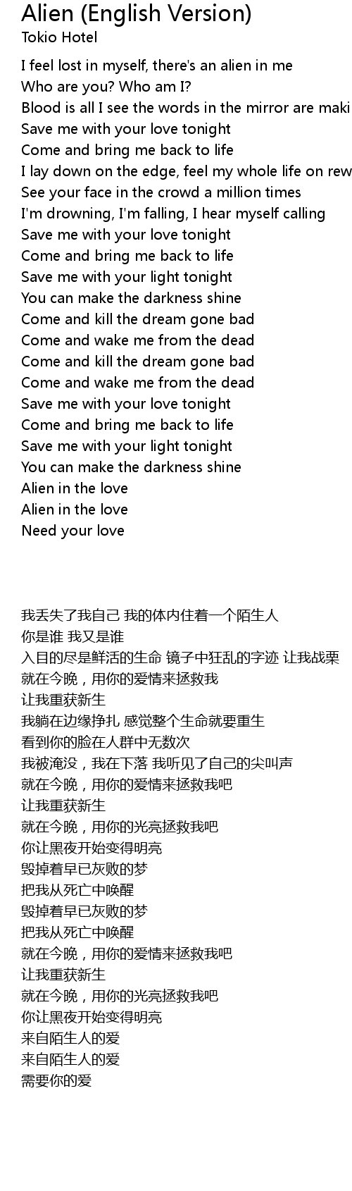 I feel lost in myself, there's an alien in me |