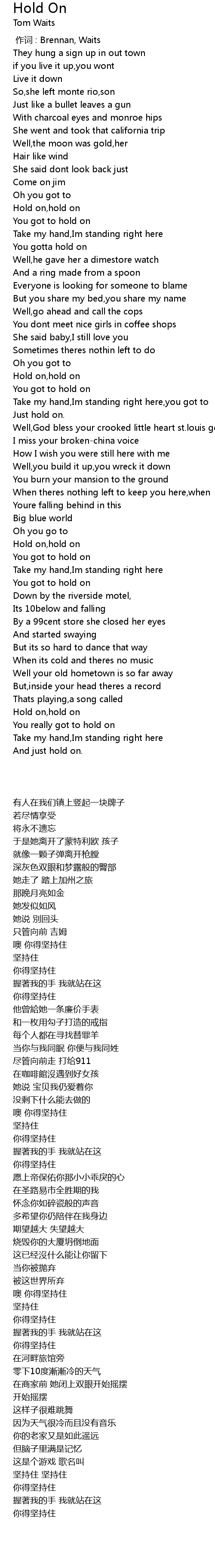 | [00:59.750] | 坚持住 |