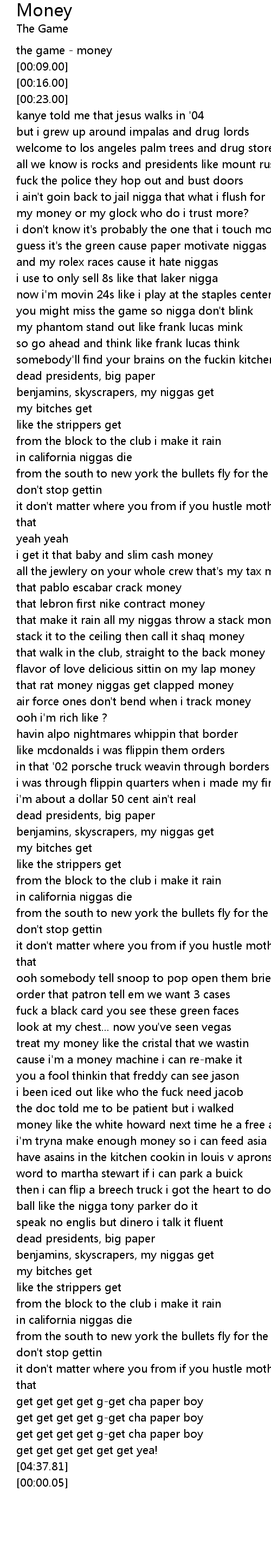 | [00:52.43] | guess it's the green cause paper motivate niggas |