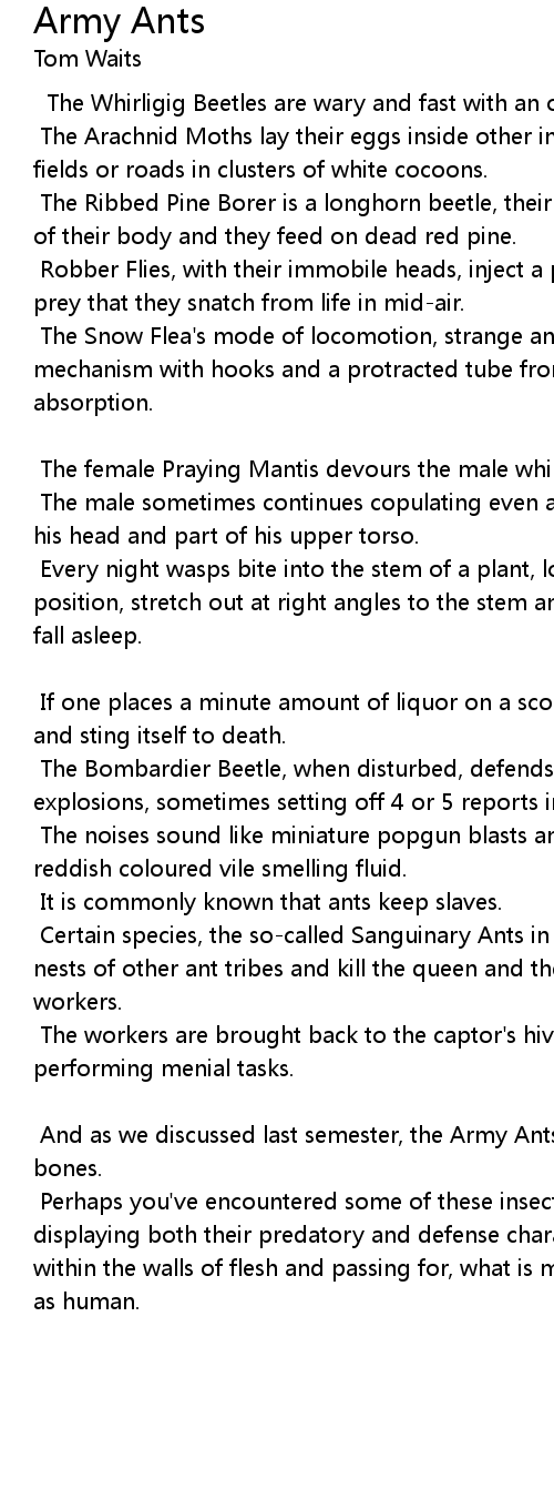 And as we discussed last semester, the Army Ants will leave nothing but your bones. |
