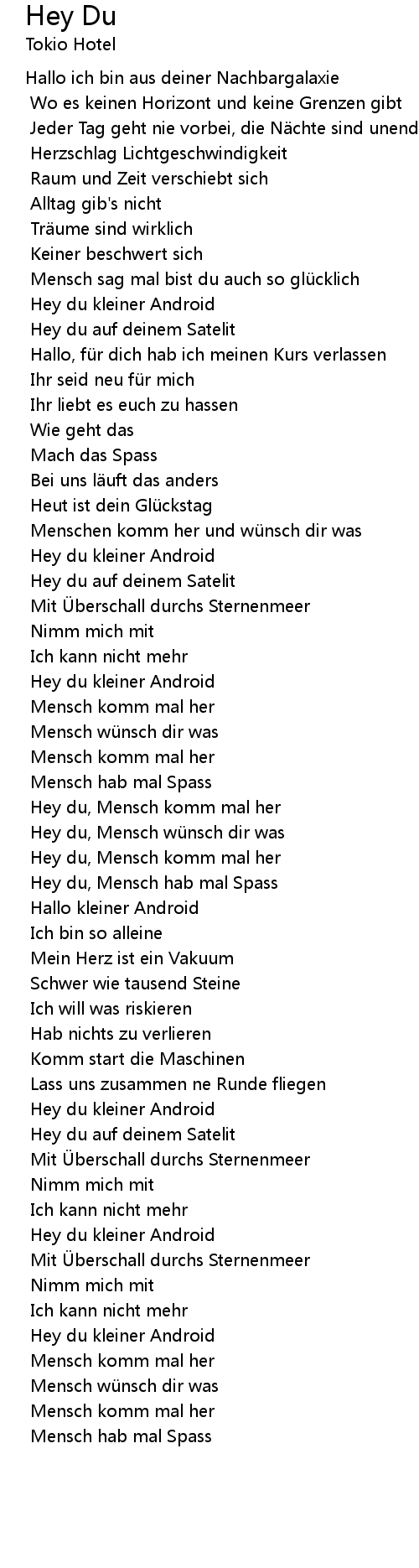 | Hey du, Mensch hab mal Spass | |
