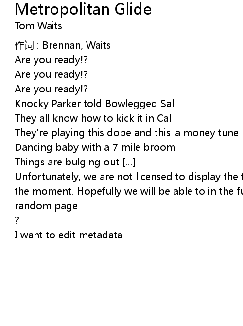 | Unfortunately, we are not licensed to display the full lyrics for this song at the moment. Hopefully we will be able to in the future. Until then, how about a | |