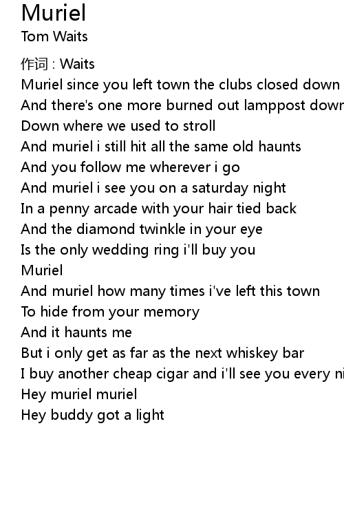 | Muriel since you left town the clubs closed down | |