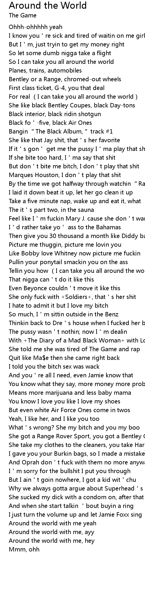 | [01:12.810] | Tellin you how I can take you all around the world |