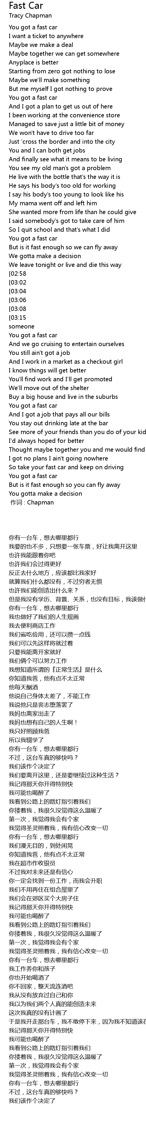 | [03:29.000] | 你有一台车,想去哪里都行 |